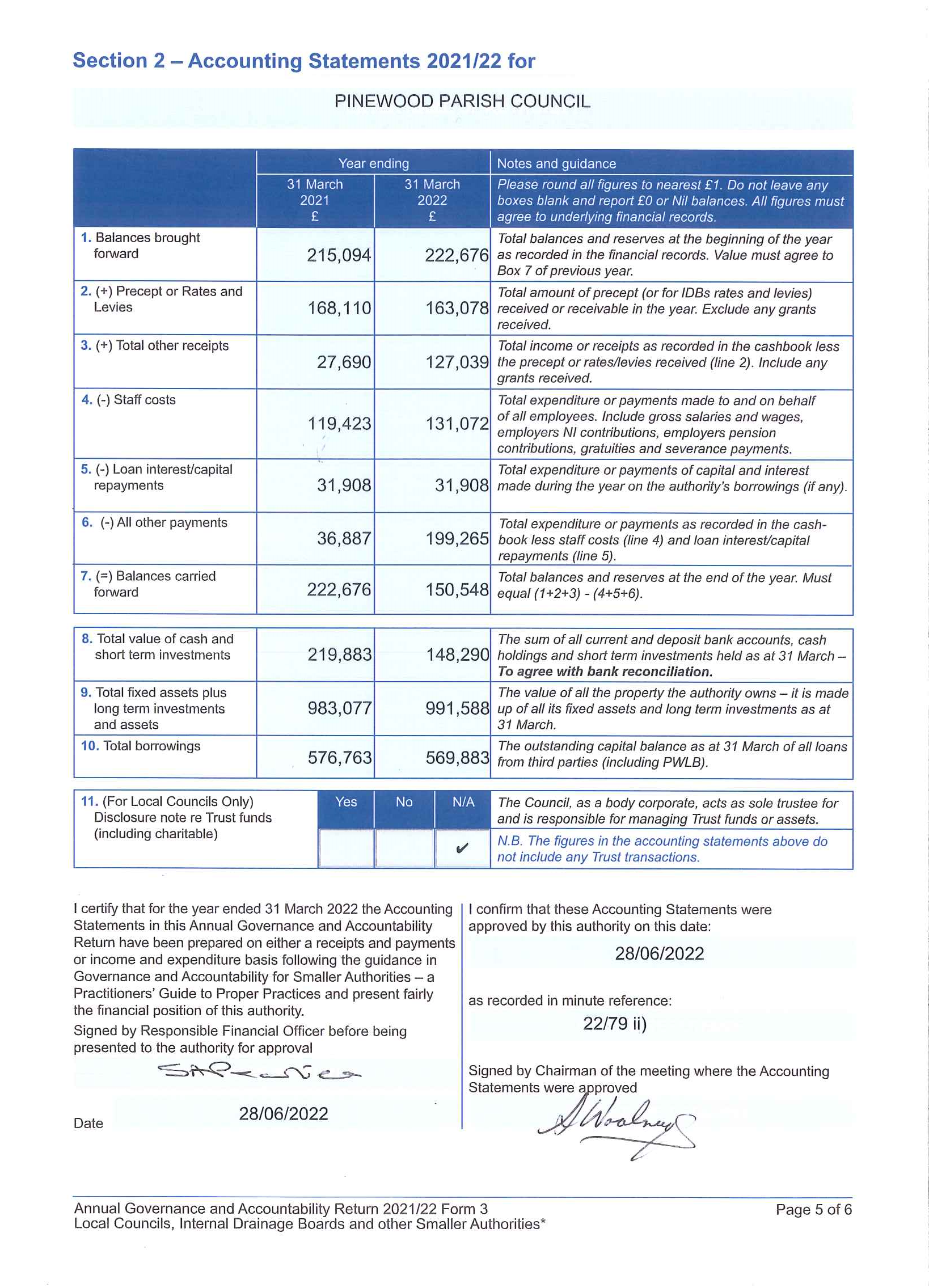 Pinewood Parish Council Accounts 2021 2023 (docx)